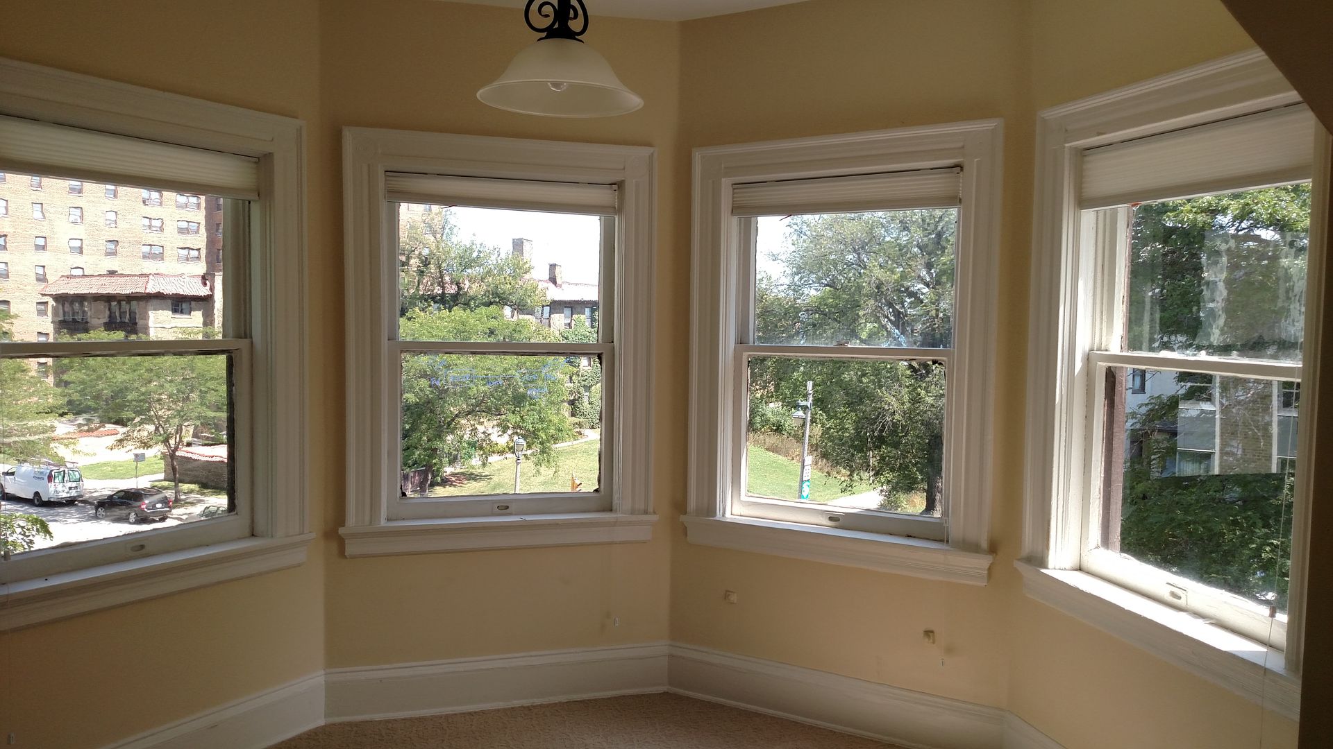 1681 N. Prospect Ave. has a gorgeous top-floor two-bedroom complete with a den, a library office, a private laundry room, and beautiful architectural details throughout. Featuring antique fixtures, new appliances, marble kitchen & bathroom, and tastefully painted walls, this flat cannot be beat. This third-story walk-up has carpeting throughout and is the only live-in unit in the building (the rest is office space). Monthly rent of $2000 includes EVERYTHING: heat, water, sewer, electricity, central air, and in-unit washer & dryer. Off-street parking is available on-site for $75-$150/mo.