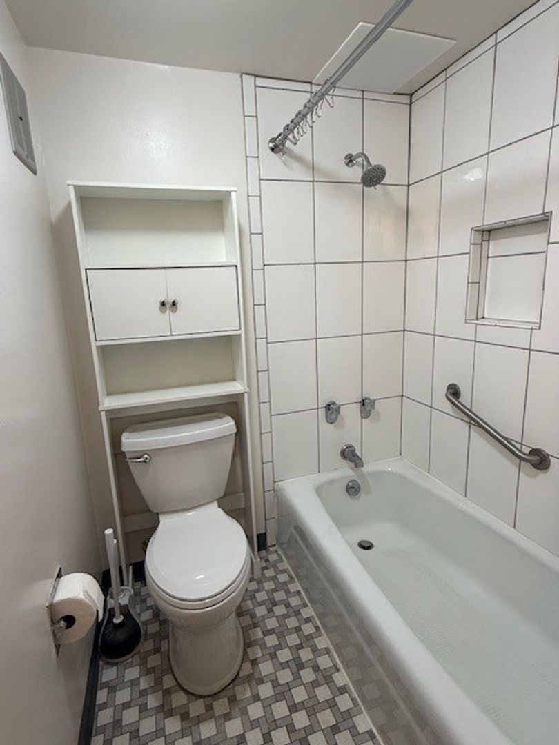 Studio with 1 bathroom. Split bathroom (vanity outside the shower/toilet room).