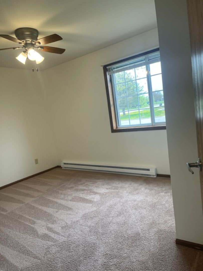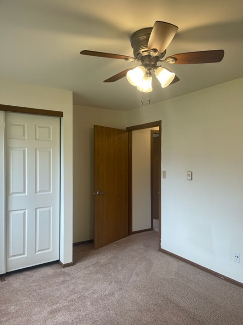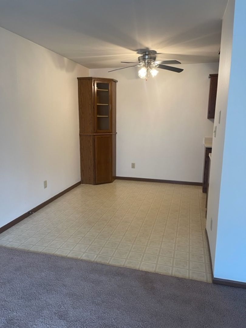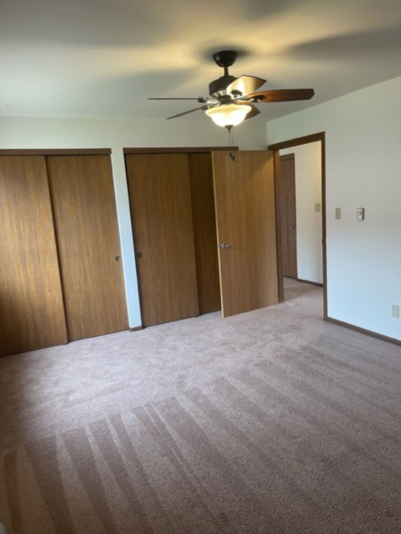 detached garage, off-street parking, secure building, in-unit laundry, blinds, close to schools, close to park, assigned parking, close to hwy 60, professionally managed, built-in cabinet (dining room), dedicated maintenance staff, ceiling fans, close to Community Center, pet friendly, updated fixtures, lawncare provided by landlord, snow removal provided by landlord, locked mailbox, garage door opener, garage keypad, two closets in primary bedroom, full size kitchen appliances, quiet neighborhood, close to shopping, linen closet, lower unit, dogs up to 70# in lower units, 2 Bedroom.