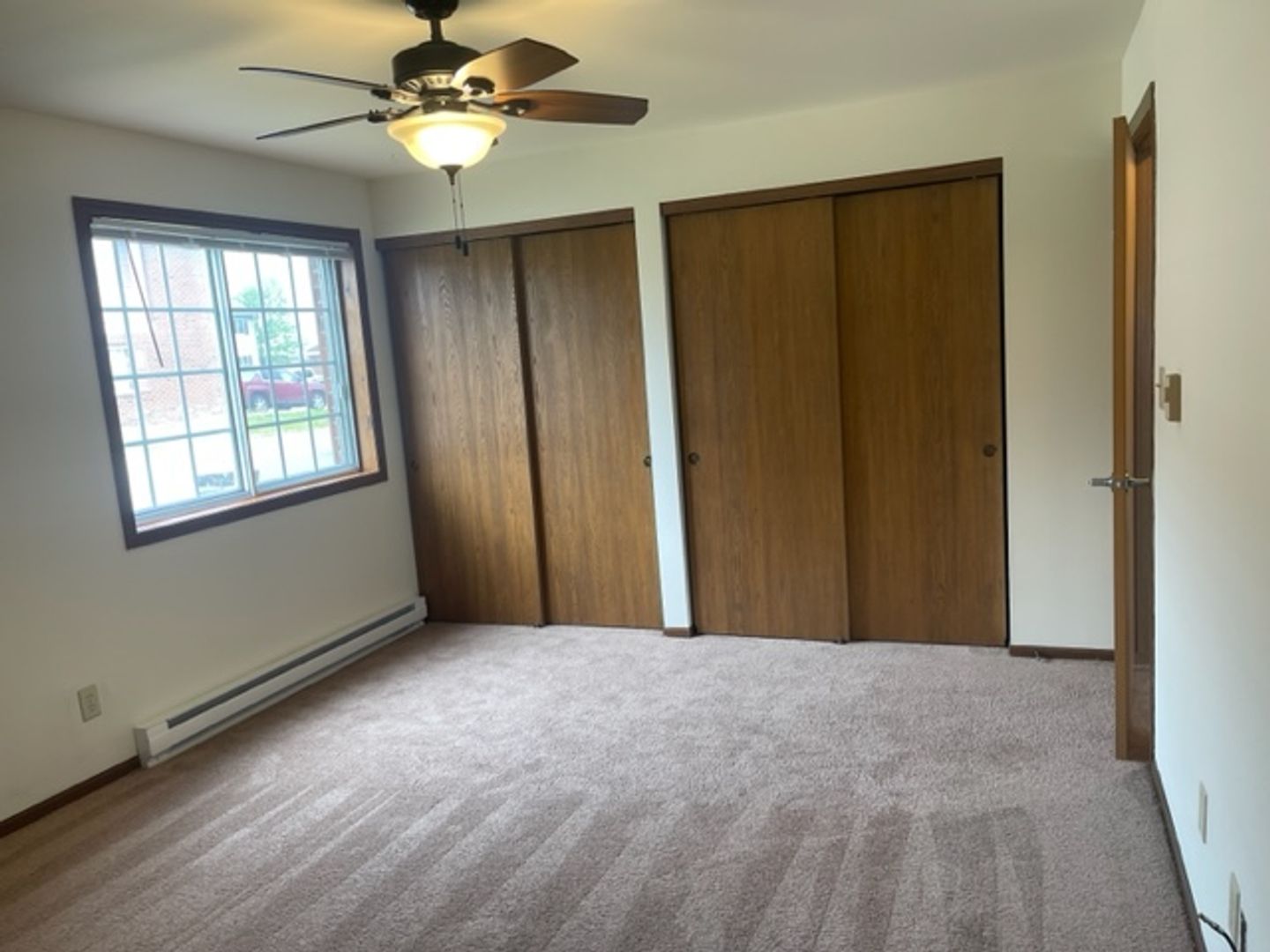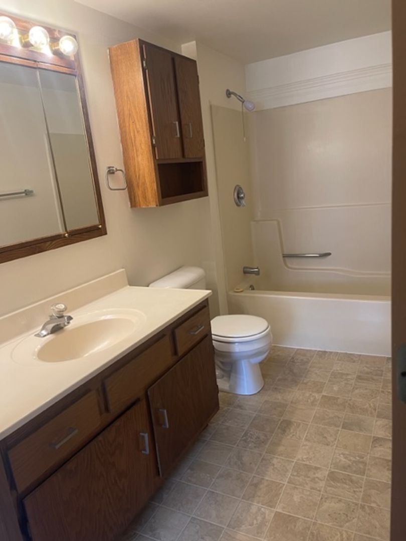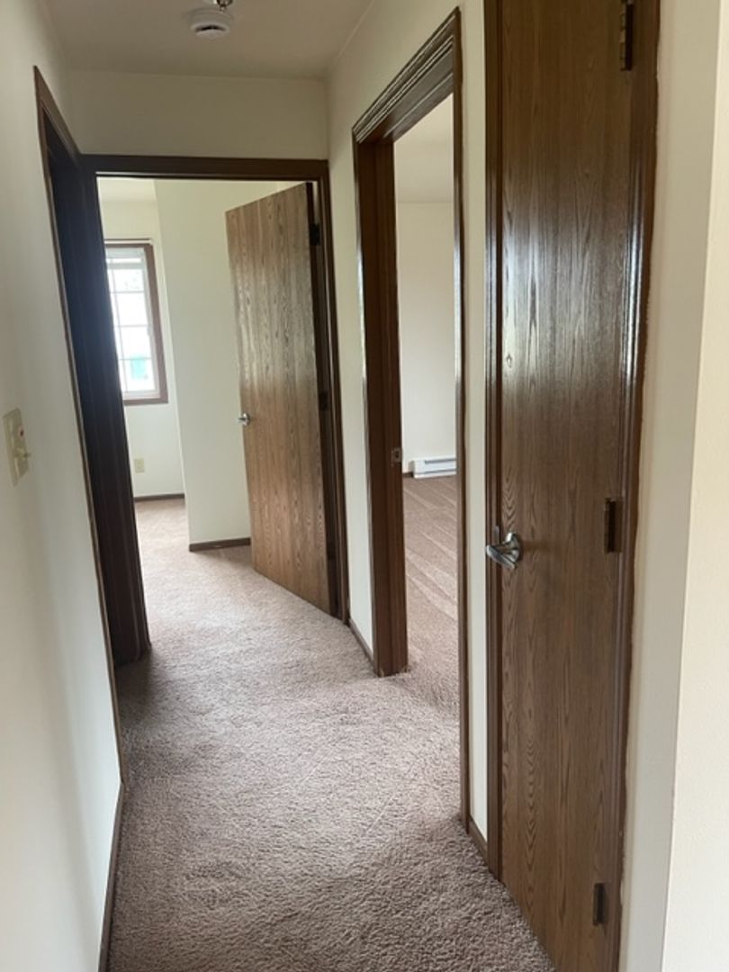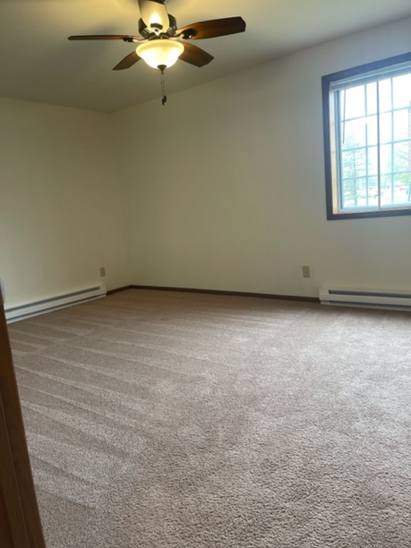 detached garage, off-street parking, secure building, in-unit laundry, blinds, close to schools, close to park, assigned parking, close to hwy 60, professionally managed, built-in cabinet (dining room), dedicated maintenance staff, ceiling fans, close to Community Center, pet friendly, updated fixtures, lawncare provided by landlord, snow removal provided by landlord, locked mailbox, garage door opener, garage keypad, two closets in primary bedroom, full size kitchen appliances, quiet neighborhood, close to shopping, linen closet, lower unit, dogs up to 70# in lower units, 2 Bedroom.